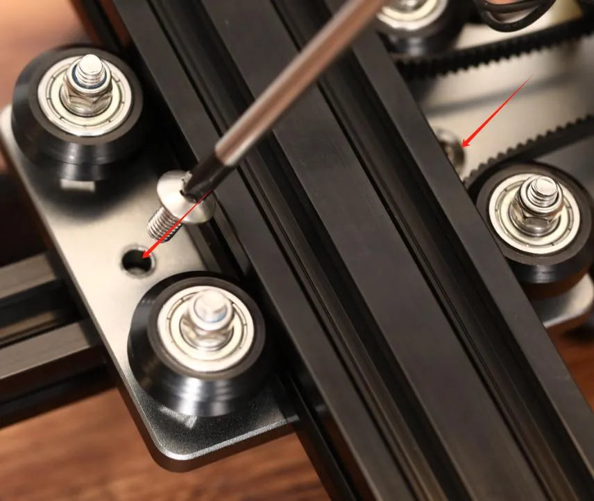 If not vertical, loosen the screws slightly, adjust, then tighten fully once aligned. Proper alignment prevents wobbling and ensures precise movement.